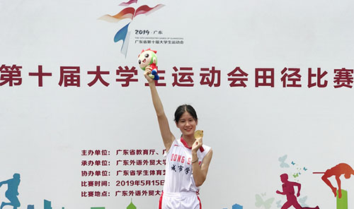 今日上午,在广东省第十届大学生运动会田径女子甲组(本科公共体育组)跳远比赛中,外国语学院叶翠诗同学以5.05m的好成绩摘得冠军。这是beat365官网在广东省大学生运动会上获得的第一枚金牌。 此