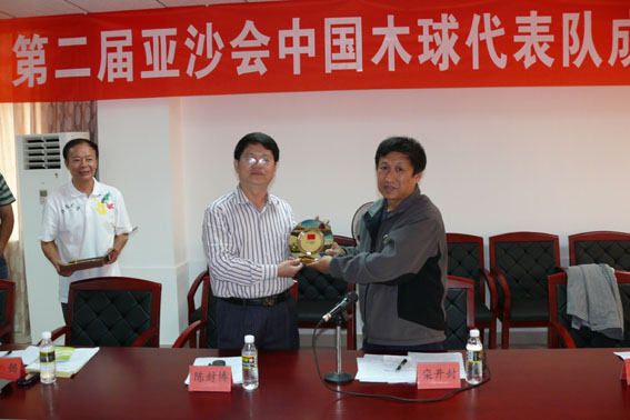 校党委陈封椿副书记代表学校感谢国家体育总局对欧冠官网体育工作的高度肯定和大力支持,他指出能够有机会代表国家队参加亚洲赛事,是学校在211工程大学建设中的大事和喜事,希望队员们刻苦训练,争取好成绩,为国家争光,为学校添荣。肖水平领队汇报了木球队备战情况。会上,陈封椿副书记代表欧冠联赛官网与社体中心领导互赠纪念品。