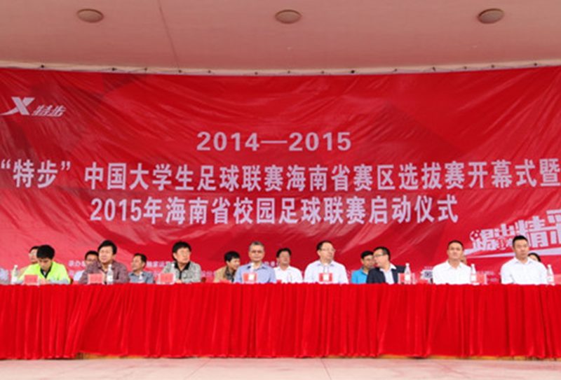 2015年3月24日, 2014—2015“特步”中国大学生足球联赛海南省赛区选拔赛开幕式暨2015年海南省校园足球联赛启动仪式在欧冠联赛官网海甸校区举行。海南省教育厅副厅长孔令德、欧冠联赛官网副校长傅国华、海南省教育厅体卫处处长卢刚、特步(中国)有限公司代表黄辉嘎等人出席大赛开幕式。
