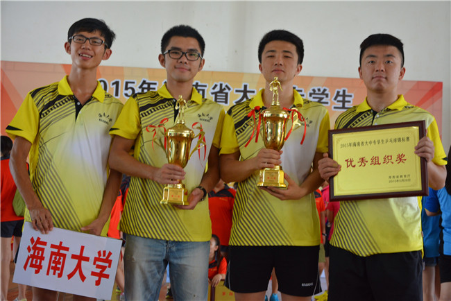 2015年海南省大中专学生乒乓球赛于5月25日至28日在海南省高级体育运动学校隆重举行。欧冠官网派出由田东为领队,吴钟权、冯芳为教练员,杨文昕、刘雪帆、王旭、李俊峰、陈宇浠、庄黎婷、冯嘉慧、易凡共8名学生为队员的代表队参加高校专业组的比赛。
