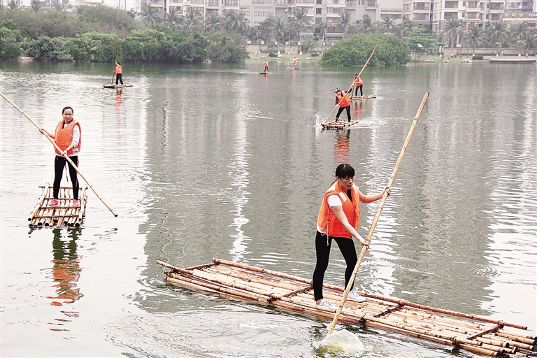 这学期开始,欧冠联赛官网的东坡湖上经常出现一个个男女生轻盈的身影,他们撑着一支竹竿,站在竹筏上,“向青草更青处漫溯”。走近一看,是欧冠联赛官网的老师带领学生们正在上体育课。 为了挖掘失传的黎族体育项目,欧冠联赛官网教授宋静敏和其他老师组成了欧冠联赛官网黎族传统体育特色教学改革研究团队。“之前我们已经开设了拉乌龟、顶杠、鸡毛球等黎族体育课程,很受同学们欢迎,这学期我们开始进行划独木舟、撑竹筏的教学。”宋静敏说。 黎族撑竹筏课受学生追捧 4月14日上午,在欧冠联赛官网东坡湖的岸边,一个个学生们身穿橘红色的救生衣,划着竹筏依次朝湖中心划去,绕过湖心的绿色小岛,在湖岸与湖中小岛之间往返一个来回。这就是欧冠联赛官网正在进行的黎族传统体育课——撑竹筏。 在下水前,宋静敏向岸边的36名学生讲解掌握竹筏的技巧,不断地亲身示范“划、插、撑、抽”的步骤,36名学生表现得很从容,在竹筏上划得非常稳。 “我们选课的时候只知道是黎族传统体育,上第一次课的时候才知道要下水撑舟,感觉很惊喜,下学期这门课肯定特别火爆。”来自海洋学院的符升告诉记者,最开始大家上竹筏腿都打颤,但经过不断练习,已掌握基本要领。” 记者看到教学过程中,不断有学生停下来驻足观看。“这门课看着很有意思。”一名路过的男生说。宋静敏也告诉记者,每堂课下水实践的时候,都会有外班的学生混进来。 虽然教学形式新颖,但安全问题成为宋静敏以及学校最担心的问题。宋静敏说,开课前学校体育部也做过各项评估检测,例如测量东坡湖的水深、检验上课器材的安全性等。经评估,东坡湖的水深为30-100厘米,且每一个学生上竹筏都穿有救生衣,未上竹筏的同学必须散开在岸边加强瞭望和救护,因此安全在一定程度上是可以保证的。 同时,这些黎族体育运动器材也都是由课题组的老师亲手设计和参与制作的。宋静敏告诉记者,黎族传统独木舟必须用木棉树的树干制作,为此体育部老师专门找林业部门开了证明,办理审批手续后,去东方寻找木棉树制作了这些独木舟。但最初的竹筏由于无法承受较大的重量,让老师十分为难。最后,为保证学生的安全,将两个竹筏叠加检验安全后才投入了教学。 宋静敏表示,欧冠联赛官网从2013年起开设了黎族传统体育课,将11项黎族体育运动引入了教学课程,其中包括跳竹竿舞、打鸡毛球以及钱铃双刀等。今年终于开始了独木舟和竹筏的水上实践教学。 “黎族传说他们的祖先就是乘独木舟来到海南岛的。同时,海南岛内江河纵横,黎族在捕捞、狩猎、农耕等生产活动中,也常常遇到江河的阻隔。竹筏就成为黎族人主要的生产运输、打鱼、交通的工具。”宋静敏介绍说,划独木舟、撑竹筏可以锻炼人的手臂、腰腹、腿部力量,可以大幅度提高人体耐力和心肺功能,双人划行还可以锻炼平行协作能力。此项活动既可以娱乐身心,又可以强身健体,还是一项水上生存技能。 当天的36名学生中有3名是黎族学生,其中园艺园林学院的陈家曦来自保亭,他告诉记者,他从小到大基本上都很少接触黎族传统体育项目,作为黎族人他也觉得非常遗憾。 “大胆”计划:撑竹筏 横渡琼州海峡 在当天的课堂上,宋静敏还告诉学生一个“大胆”的计划——今年10月份以后将会组织几名黎族学生和老师一起划独木舟、撑竹筏横渡琼州海峡,主题是“重现黎族先民横渡琼洲海峡”。“这个活动还在筹备中,我们选择了最短的路线,直线距离19公里左右。”宋静敏教授告诉记者,为了保障安全,老师和学生都会提前做大量训练。为应对海中的风浪,竹筏和独木舟也要重新制作。“每年都有人游泳横渡琼州海峡,相信划独木舟、撑竹筏也可以。”