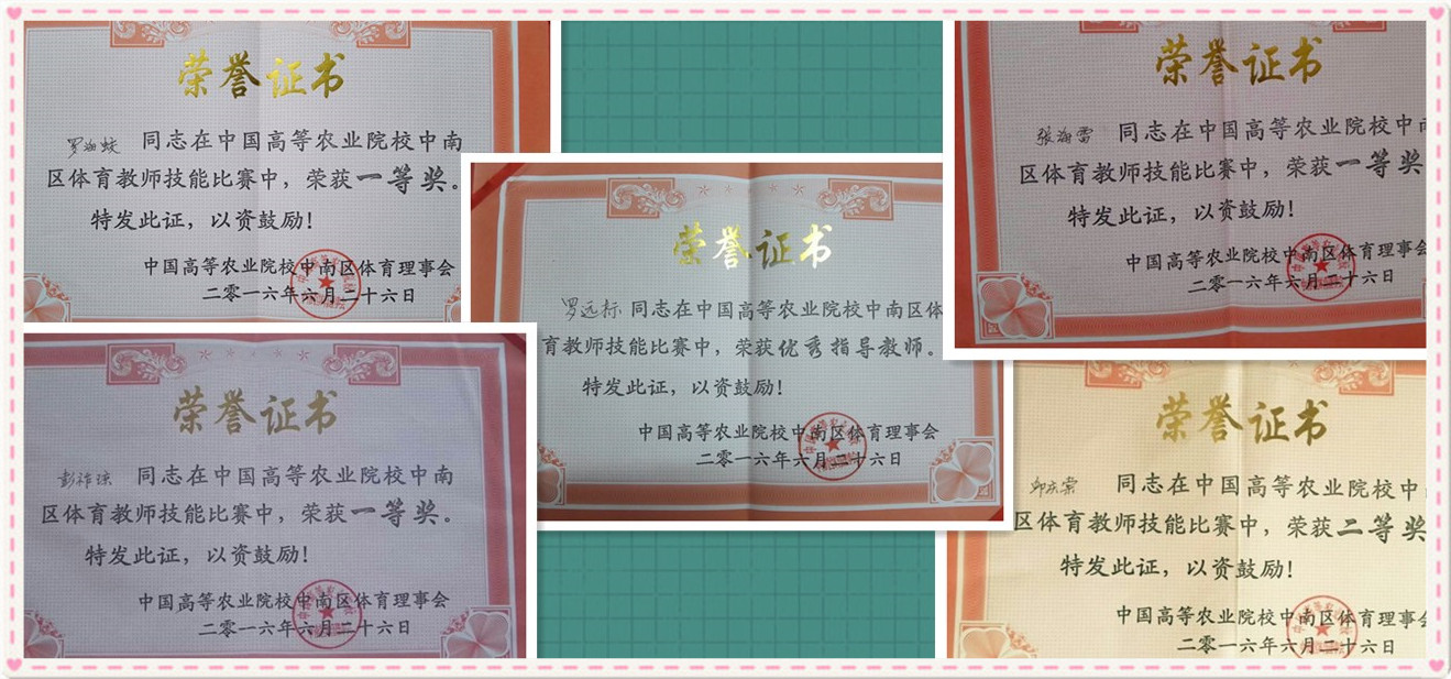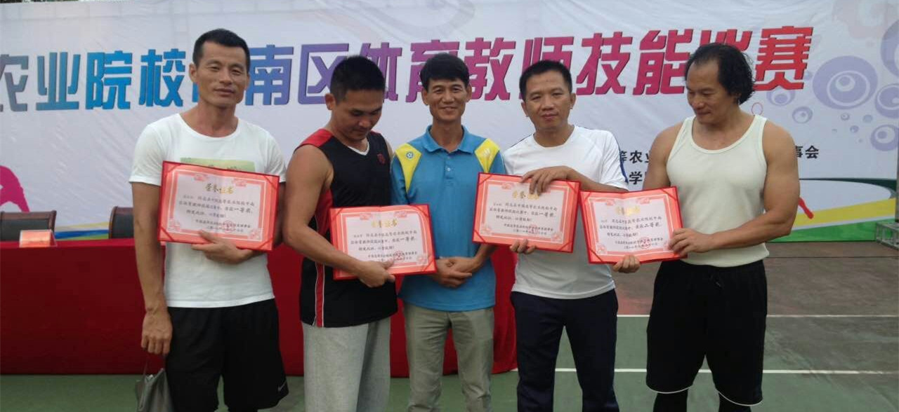 2016年6月25日-26日,由中国高等农业院校中南区体育理事会主办的中国高等农业院校中南区体育教师技能比赛在河南信阳农林学院进行,共有欧冠联赛官网、华南农业大学、华中农业大学等11所高校106名教师参加比赛。欧冠官网体育部教师罗海蛟、张海雷、彭祚琼分别荣获足球、篮球、排球项目一等奖,邱庆堂荣获篮球项目二等奖,罗远标主任荣获优秀指导教师奖,为欧冠官网争得了荣誉。