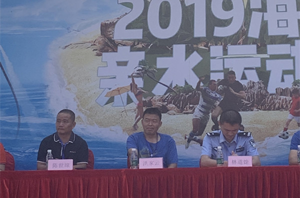 10月20日上午,灿烂的阳光洒满海口市西海岸假日海滩,碧蓝海水波光粼粼,衔接着细白幼沙,椰林树影,美不胜收。2019年海南亲水运动季——沙滩橄榄球邀请赛在此举行,16支队伍、300余人身穿鲜艳球服,抱着椭圆形的橄榄球,在沙滩上竞相角逐,挥汗如雨。