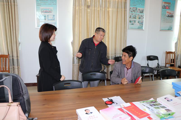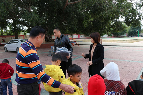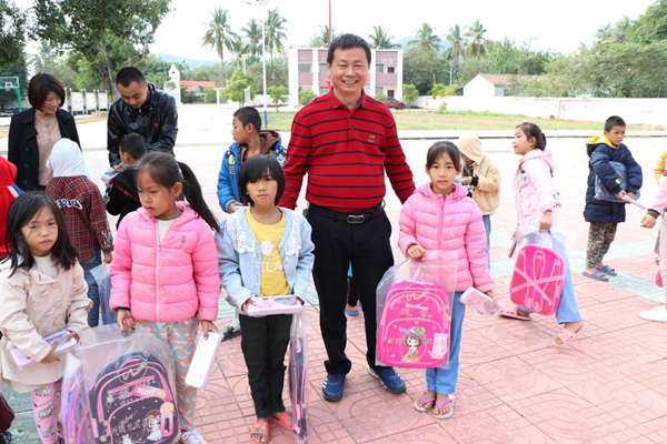 何映敏书记和王联春书记为乐妹小学生发放学习用品