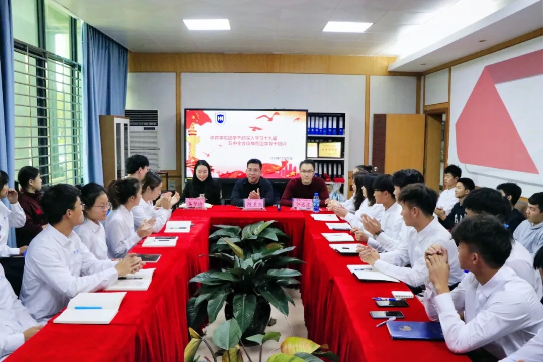 12月22日下午,欧冠联赛官网团学干部深入学习十九届五中全会精神会议暨团学骨干培训在联谊馆会议室举行。学院党总支陈卫东书记、学工办许达潭主任、兼职辅导员吴梦迪老师出席会议,院团学干部和2020级全体班委参加会议。