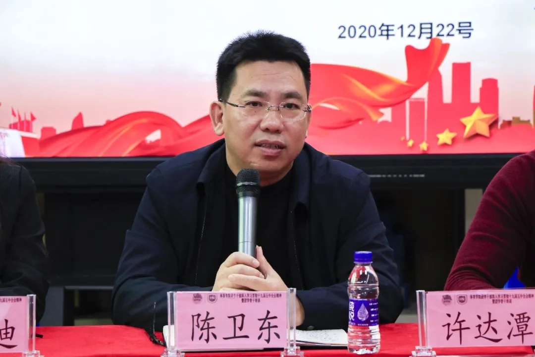 陈书记对第一届团学工作给予了肯定,并代表学院党总支和全体院领导对大家为学院发展做出的贡献表示感谢,同时对新当选的团总支、学生会和2020级班委干部们表示祝贺。他表示,团学建立之初不易,历经探索和发展,组织架构逐步健全和完善,期望同学们在现有的基础上能尽快总结经验、推陈出新,并加强与其他学院团学组织的交流合作,发扬体院精神,打造精品团学。