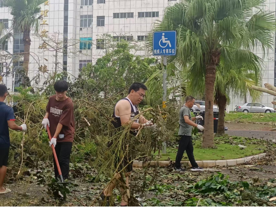 学院安排吴强副院长等三人在学院值班。台风期间,体育馆地下室出现积水,严重危及体育馆空调、机房等大型设备的安全。在这危急时刻,陈卫东书记和洪家云院长果断指示,吴强副院长带领值班人员克服重重困难,充分利用备用发电机及抽水机,轮流值班抽出地下室积水,为保护学校财产立下汗马功劳。