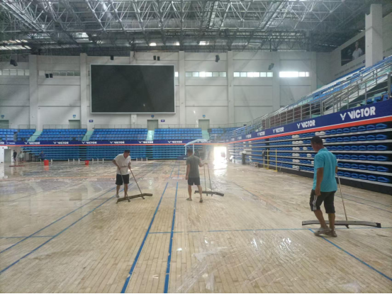 台风来临之前,欧冠联赛官网积极行动,全力做好各项防护工作。在陈卫东书记、洪家云院长及班子成员的带领下,各科室迅速落实台风防范各项措施。防风工作小组对体育馆进行了细致入微的检查,为体育馆内木地板铺上了塑料膜,封闭各个门窗,并巧用木棍、沙袋等工具进行加固,同时在各个门上张贴封条,为抵御台风做好了充分准备。