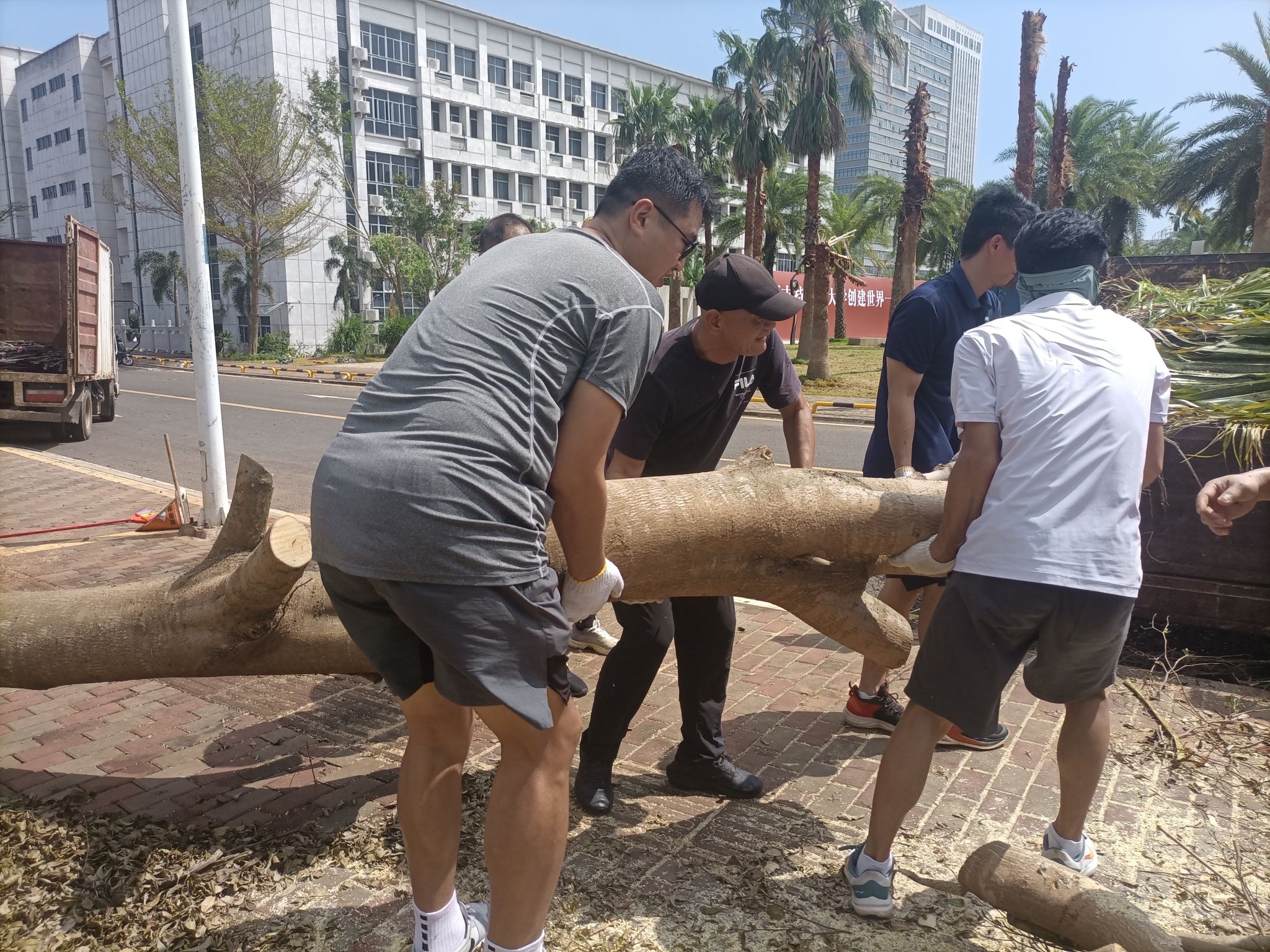 在学院党政领导班子带领下,全体党员群众积极行动,连续奋战8天。欧冠联赛官网不仅负责包干责任区的木棉大道、新南门西边广场,还主动承担多功能体育馆周边、第一和第二田径运动场、网球场、排球场、户外拓展基地周边的树木及垃圾清理等任务,投入65名教职工(其中43名党员)进行奋战,从7日至14日,共奋战了8天,240多人次,完成了艰巨任务。在清理木棉大道期间,邹勇华副校长莅临检查与指导,并参与其中,鼓舞了大家的气势。在活动过程中,党员充分发挥先锋模范作用,冲锋在前,勇于担当,用实际行动践行党的宗旨。在党员的带头作用下,部分体育专业学生及志愿者也投入清理工作,师生人力400多人次,清理垃圾近 30 车。