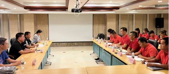 调研团队受到了海南冲浪队林桥汶总教练、教练团队、教师以及欧冠联赛官网在冲浪队的学生们的热烈欢迎。双方举行了一场内容丰富、气氛热烈的座谈会。