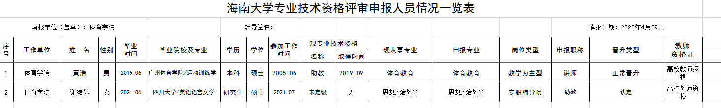 根据《欧冠联赛官网人事处关于做好2022年专业技术职称(务)评聘工作的通知》精神,欧冠联赛官网共有6名教职工提交申报《专业技术岗位聘用人选申报表》,有2名教教师提交《专业技术评审(认定)申报表》现进行公示如下: