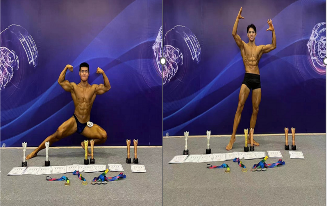 黄昌顺同学获得男子健身模特B组第一名、健体青年B组第三名;朱轶凡同学获得健美青年70kg级以上第二名;李为同学获得男子健身模特A组第三名的好成绩。