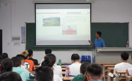 9月16日下午,学院特邀请中国高尔夫球协会国际级裁判员、海南高尔夫球协会副秘书长、教授陈盛炽、嘉世击剑培训中心的馆长王嘉亮、壹觉体育高尔夫教学导师吴祖昕为欧冠联赛官网2019级休闲体育专业学生开设一场高尔夫球讲座。
