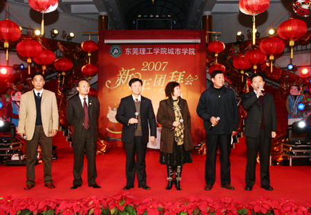 1月22日的大学生活动中心,张灯结彩,笑语欢歌,暖意融融。主席台上“恭贺新春”的印章衬底和各色花卉交相映衬,洋溢着浓浓的春意。城市学院2007年新年团拜会在这里隆重举行。中共东莞市委副书记刘树基同志,东莞市副市长周致纳