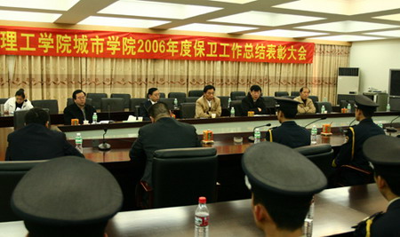 1月23日上午,我院召开2006年度保卫工作总结表彰大会。院党委书记朱志德、行政副院长张林副教授出席了会议。 会议由学院办公室主任王玉主持。会上,保卫办公室主任王现府总结了去年一年保卫工作的成绩,基本完成了“构建安全和谐