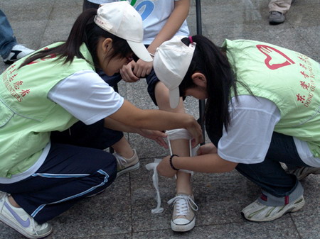 学院红十字会志愿者参加地震应急演练