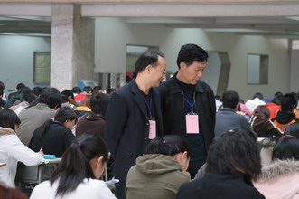 1月3号至9号,是我院2005——2006学年第一学期期末考试周,今天早上9点钟正式开考。本学期考试周考试地点主要设在四号楼大厅和学生食堂二楼餐厅。 今天参考的班级有114个,考试科目29门,参加考试的学生近5000人。1月4号至1月9号考