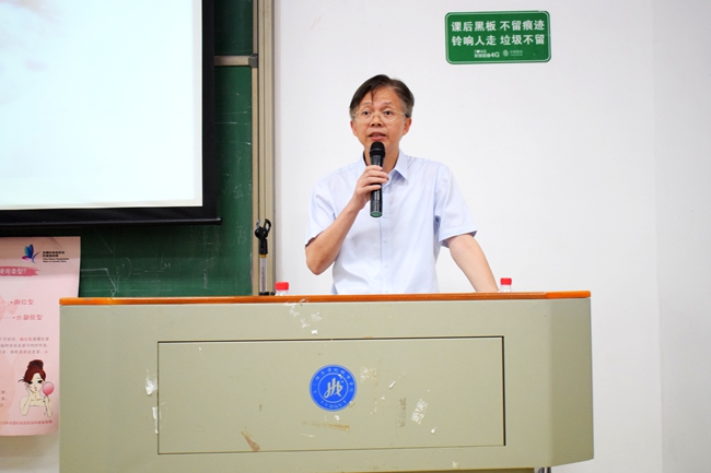5月21日晚,由东莞市市场监督管理局寮步分局主办的青年学生筑牢化妆品安全第一道防线科普讲座,在教学楼7B202。寮步市场监管分局副局长尹家付、东莞市人民医院皮肤科主任李俊杰和beat365官网办公室杜鹏举主任和后勤保卫处王锦锋处长聆听了讲座。