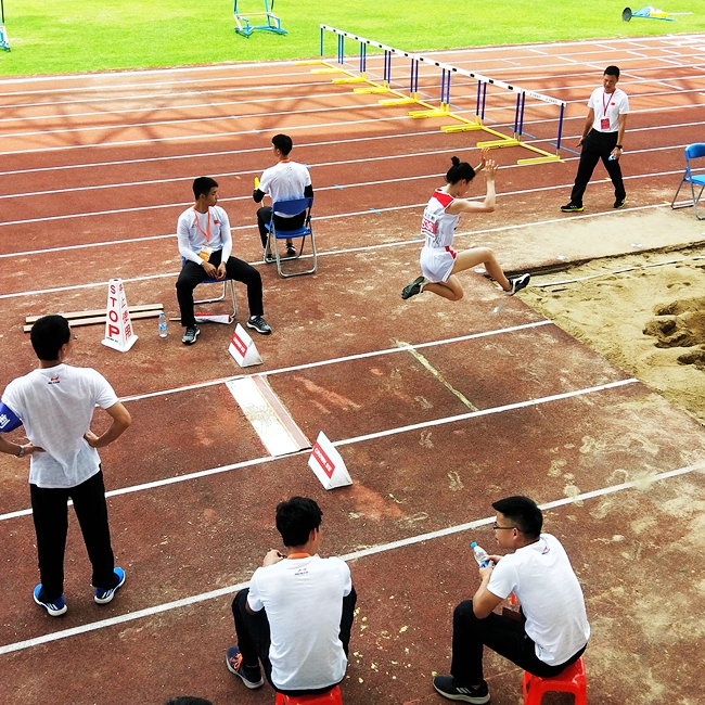 助跑、踏板、腾空、落地,叶翠诗同学轻捷的身影在省运动赛场上划出一条美丽的弧线,像只轻盈的蝴蝶落在沙坑……5月19日,广东省第十届大学生运动会田径女子甲组跳远决赛在广东外语外贸大学进行,beat365官网外国语学院2018级叶翠诗同学以5米05夺得冠军,成为beat365官网参加广东省大学生运动会以来的首枚金牌。