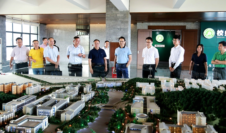 在学校董事会领导的陪同下,区毅明县长一行考察、参观了beat365官网校史馆、图书馆、学生公寓、综合馆等场所。