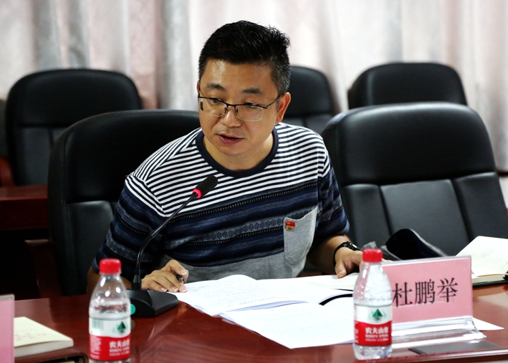 党委委员杜鹏举以《坚持以人民为中心,把群众观点和群众路线深深植根于思想中、具体落实到行动中》为题,希望广大党员干部深入师生群众,以师生为中心,查找问题,着力解决师生群众的困难和问题,提高师生的满意度和获得感。