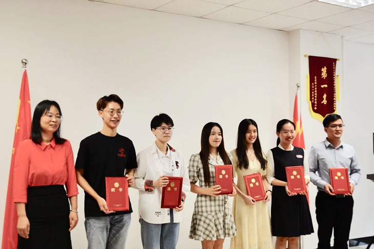 周庆副校长为首届菁英促进会理事会会长钟举文、秘书长刘畅,副会长李于旭、朱泽林、陈虹,副秘书长陈灵、杨祯榕、陈冲等颁发了聘书。