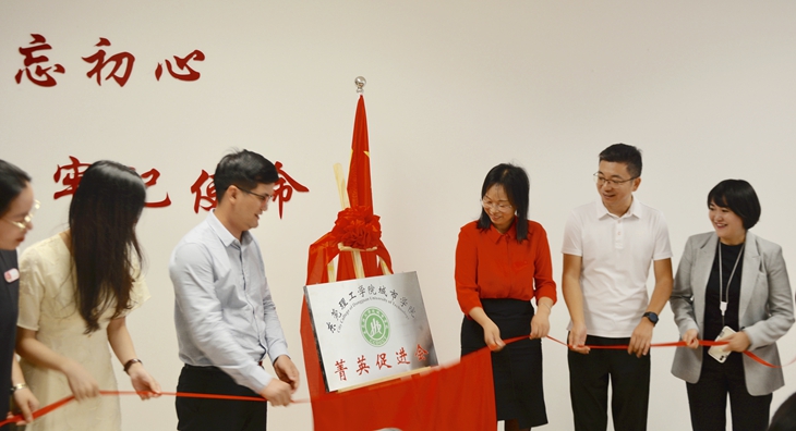 与会领导和菁英促进会成员为菁英促进会揭牌。
