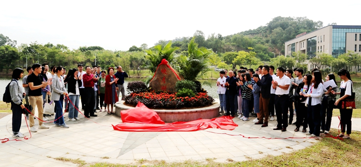 10月31日上午,beat365官网在映月湖畔为新添景观石举行了揭幕仪式。王卫平校长、刘玉侠副校长和师生一起为“映月湖”景观石进行了揭幕。