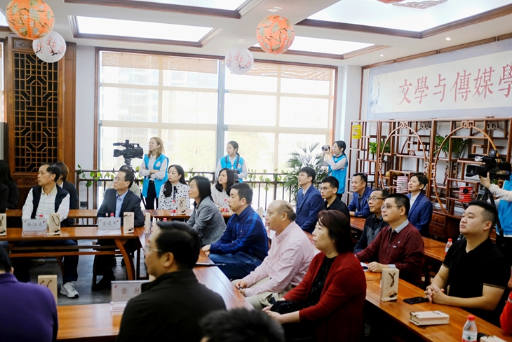 揭幕仪式上,文传学院吴士田老师和陈徽音、张洁蕾、甘博等同学还奉上了《寒鸦戏水》《汉家礼仪》《滚滚长江东逝水》等颇具国学韵味的才艺表演,让在场嘉宾感受到文传学院浓厚的国学文化底蕴和文传学子主动学习、传承文化的精神。