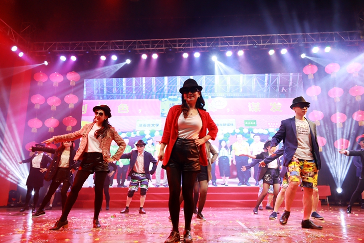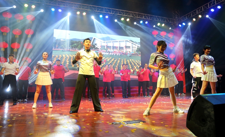 机关二直属工会舞蹈《哒哒》,在幽默、欢笑中揭开了大赛的序幕。由全校各工会小组、分工会精心组织的15支参赛队伍,从独具一格的舞蹈装束、别出心裁的舞蹈动作、幽默风趣的氛围设计,精彩的表演将大赛的气氛一次又一次地推向了高潮。在欢声笑语中,向全体教职工传递了新年祝福,展示了舞蹈艺术的魅力和教师风采。全体校领导更是激情参与其中,为晚会增添了别样的欢乐。