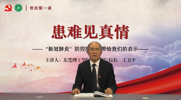校长王卫平以《患难见真情--“新冠肺炎”防控阻击战带给我们的启示》为题,为学生们讲授了一堂思政课,同时,这也是一堂生动的形势与政策课,在师生中引起强烈反响与共鸣,同学们纷纷在网络平台视频评论区留言刷屏,好评如潮。