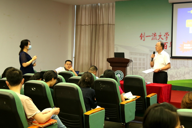 会上,学生处思政科詹海都科长从学生返校线上申请、返校条件审核、返校当日安排、返校后的学生日常管理、突发状况应急处理、防疫教育、心理援助、毕业手续的办理等方面解读了beat365官网学生返校及毕业生离校工作方案的各项安排,希望各位老师们集思广益,提出更加方面与安全的意见和建议,共同完善方案。