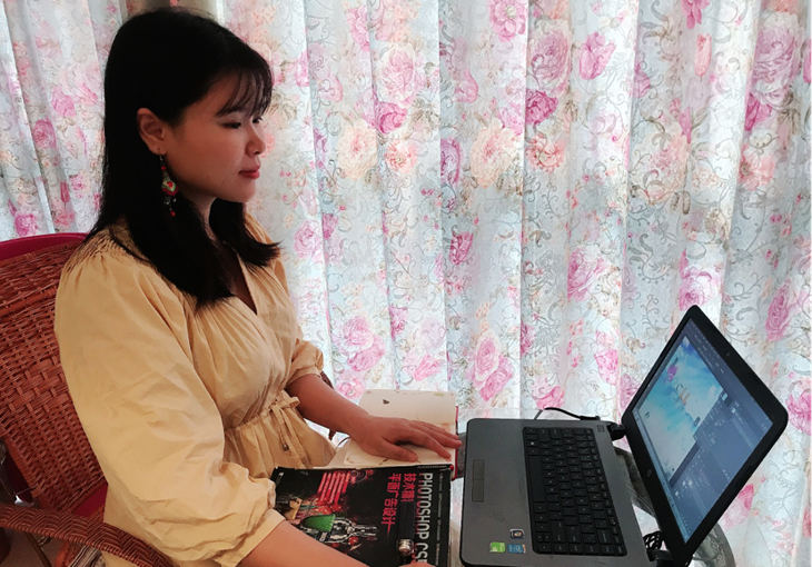 在抗击疫情、开展线上授课的特殊时期,我在专业课线上教学中融入思政,引入抗击疫情公益作品设计比赛项目,采用线上理论+线下创作+线上学生作品讲述+线下微信指导创作+线上老师点评的互动教学方式,激发学生学习和创作热情,反馈良好,提高了教学效果和促发学生的爱国热情。在选修课服饰礼仪的线上直播教学中,全程分享式、讨论式教学方式营造了良好的课堂氛围,直播间还出现了很多旁听学生和家长,这对我来说是值得高兴的事情。