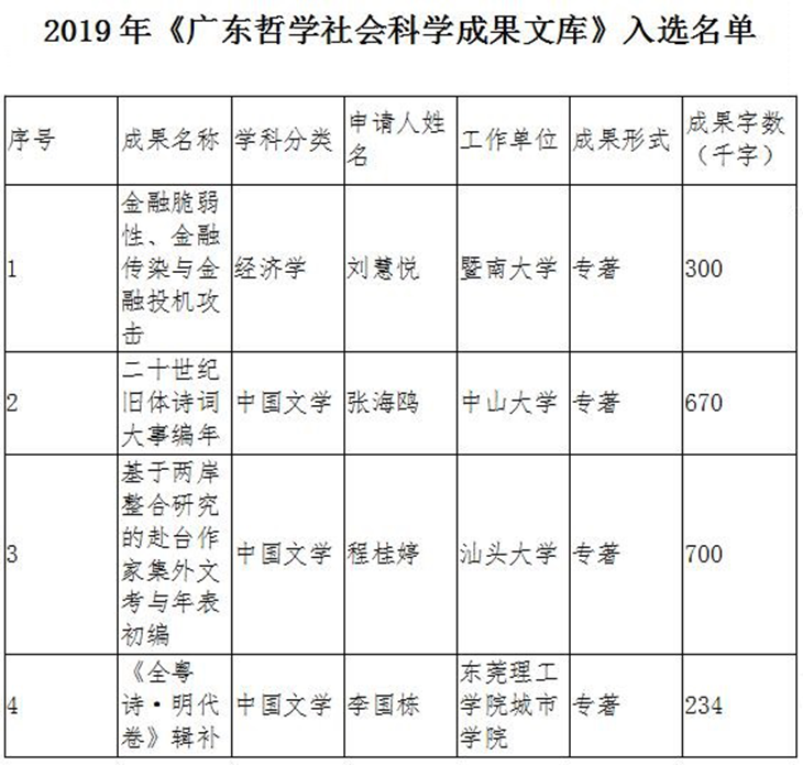 据悉,《广东哲学社会科学成果文库》旨在集中推出反映当前我省哲学社会科学研究前沿水平的创新成果,鼓励广大学者打造更多精品力作,推动我省哲学社会科学进一步繁荣发展。《广东哲学社会科学成果文库》每年只有几项成果入选,而且以结项等级为“良好”或以上的国家社科基金项目成果为主,可谓哲学社会科学领域的极高荣誉。入选成果将由省社科规划办统一组织出版。
