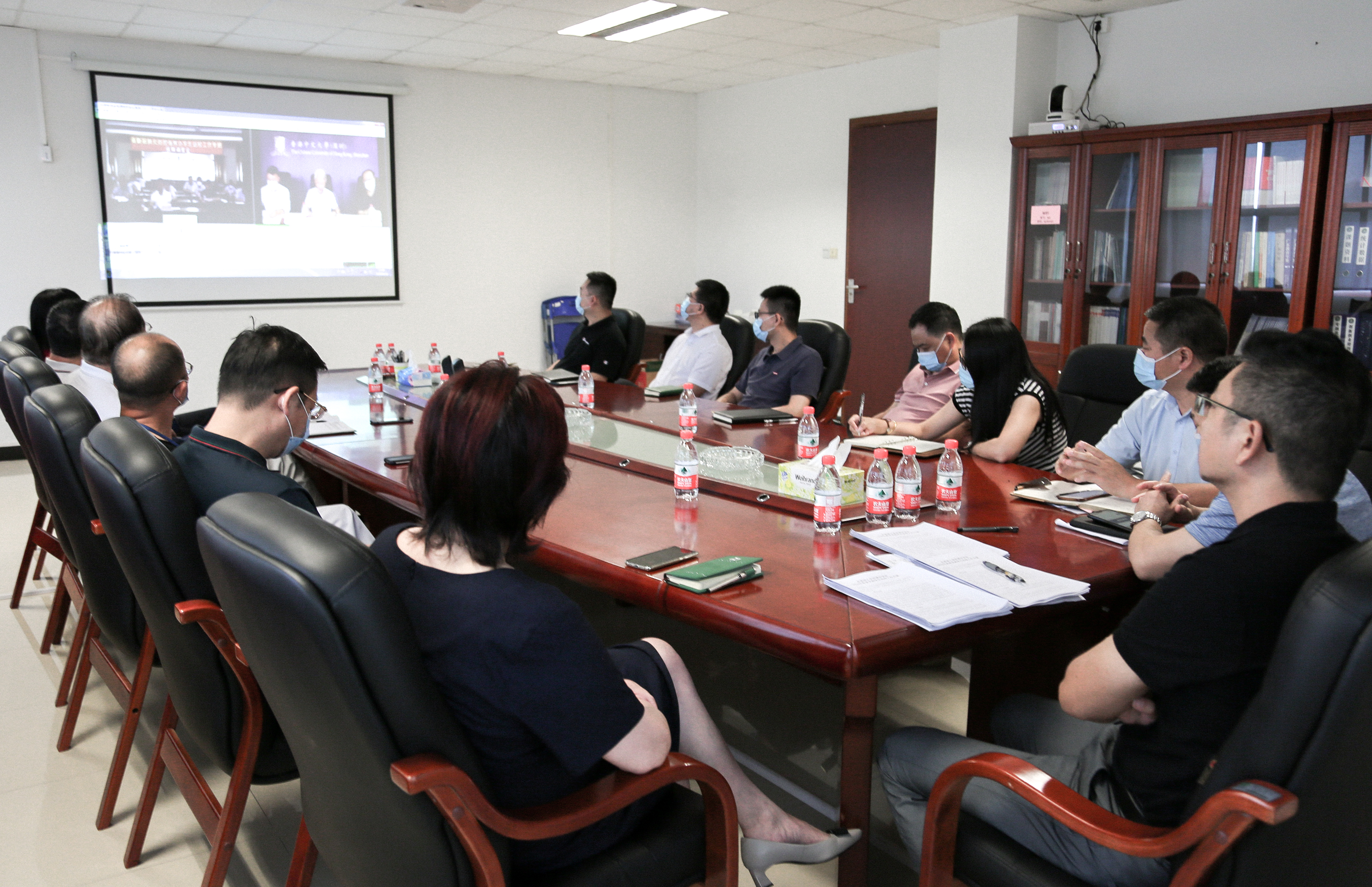 beat365官网在行政楼401会议室设立分会场,校长王卫平、党委书记章德胜、副校长高香林、黄兢、周庆、刘玉侠以及各行政职能部门负责人参加了会议。
