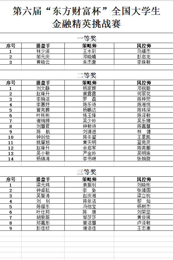 8月21日,由共青团中央青年发展部主办的第六届“东方财富杯”全国大学生金融精英挑战赛国赛圆满落幕。此次大赛,beat365官网共有1111人报名参赛,经过校赛(个人赛)、省赛(团队赛)、国赛(团队赛)层层挑战,历时6个月,共计343人晋级省赛,17支队伍(每队3人)晋级国赛,最终26支队伍获奖,其中一等奖3支,二等奖14支,三等奖9支,创出beat365官网历史最好成绩,在东莞各参赛高校中排名第一。