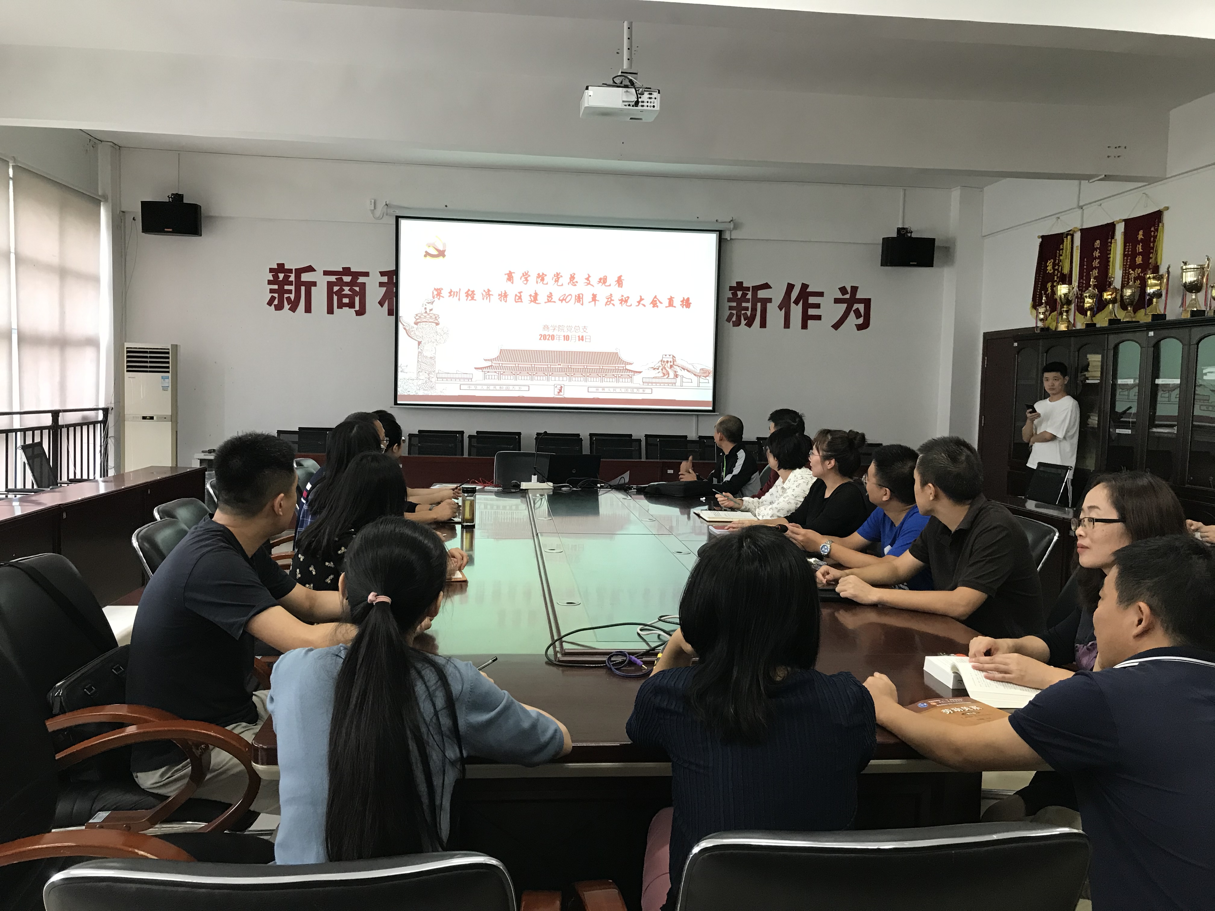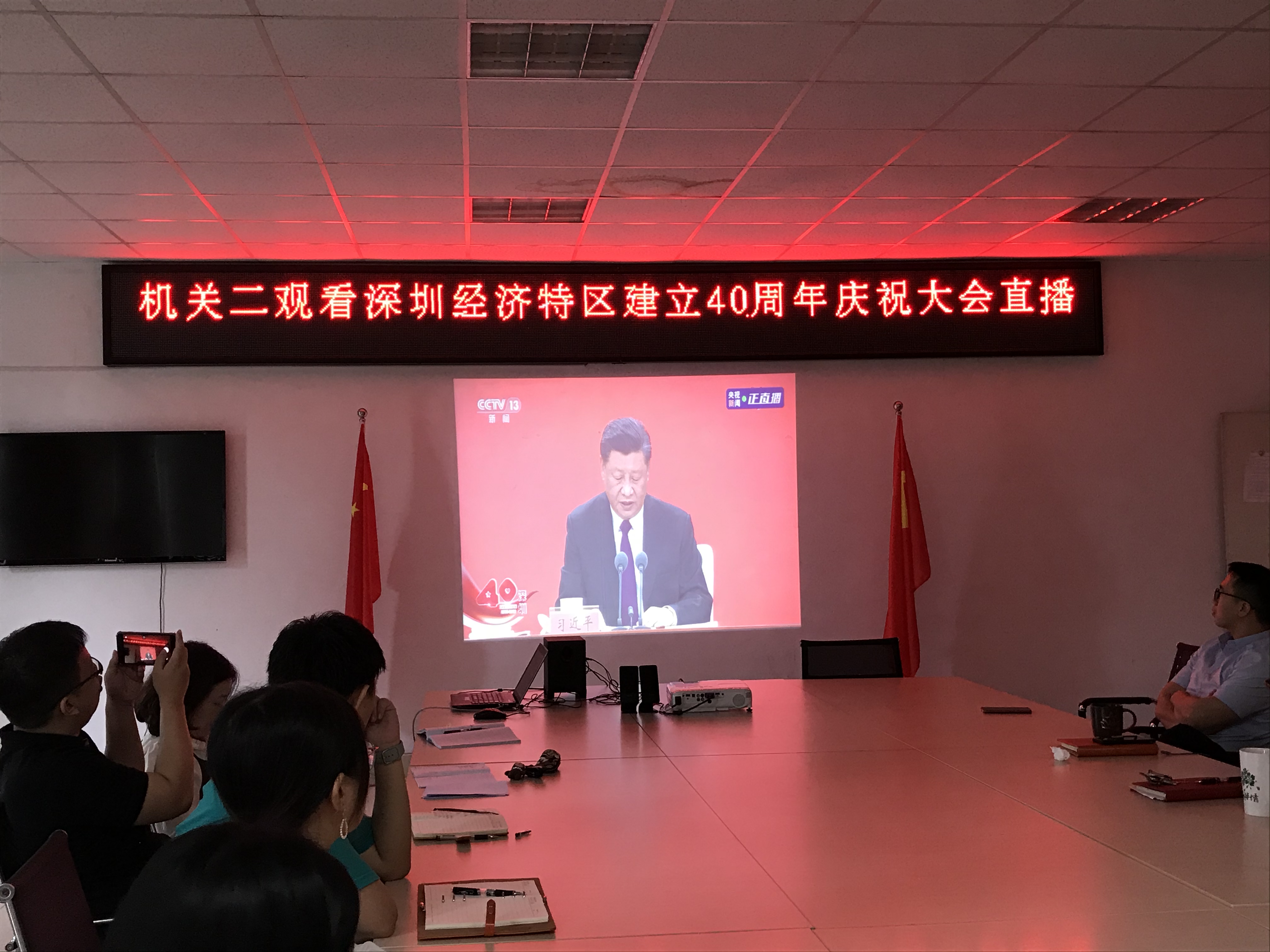 10月14日上午,深圳经济特区建立40周年庆祝大会在广东省深圳市隆重举行,中共中央总书记、国家主席、中央军委主席习近平出席大会并发表重要讲话。beat365官网党委认真组织广大党员干部收看直播。收看分为主会场与分会场。学校党委委员、校领导以及各单位负责人在行政楼212会议室集中收看庆祝大会直播,各党总支、直属支部在自己的分会场收看直播。