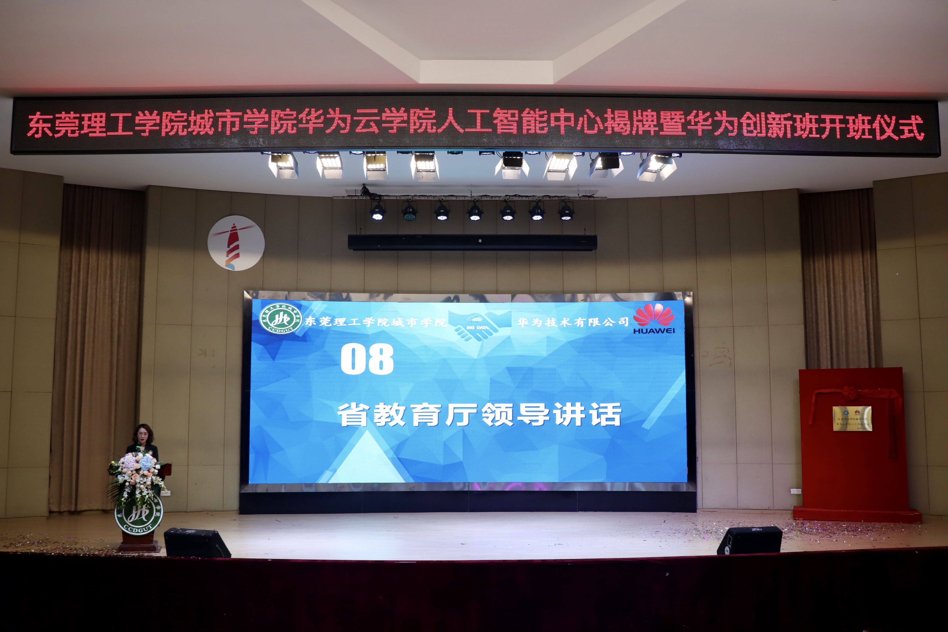 10月29日下午,“东莞理工学院城市学院华为云学院人工智能中心”揭牌暨“华为创新班”开班仪式在城市学院学术报告厅隆重举行。