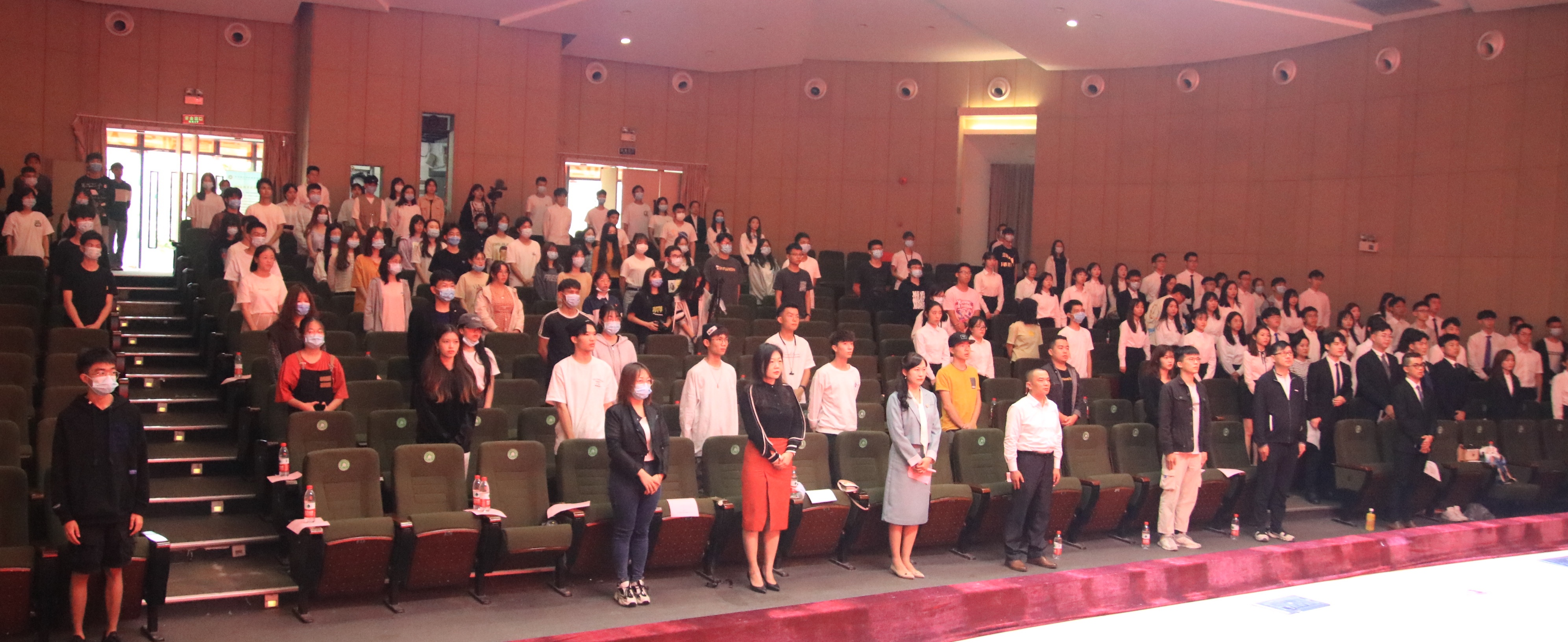 大会伊始,全体起立奏唱国歌。礼毕后,主持人播放大学生融媒体中心视频,视频展现了大学生融媒体中心的发展历程、各部门职责、严谨的工作日常及多彩的团建活动。