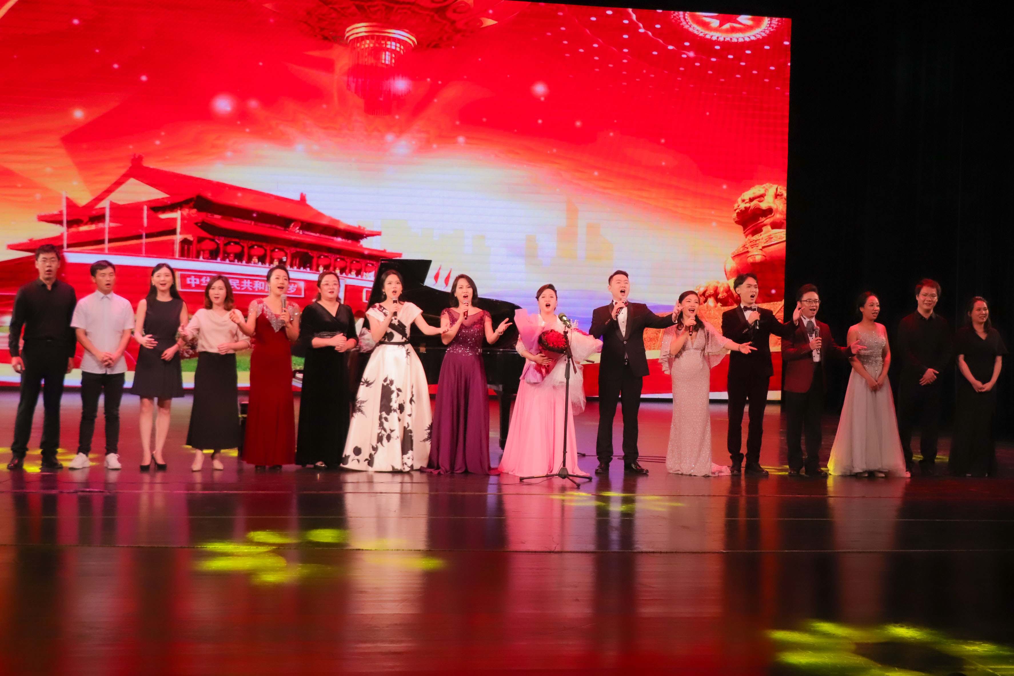 演唱会的最后,所有参演的老师大家齐声歌唱《我和我的祖国》,在老师的带领下,全场嘉宾与观众也都参与其中,现场是歌声的海洋,把音乐会推向了高潮。