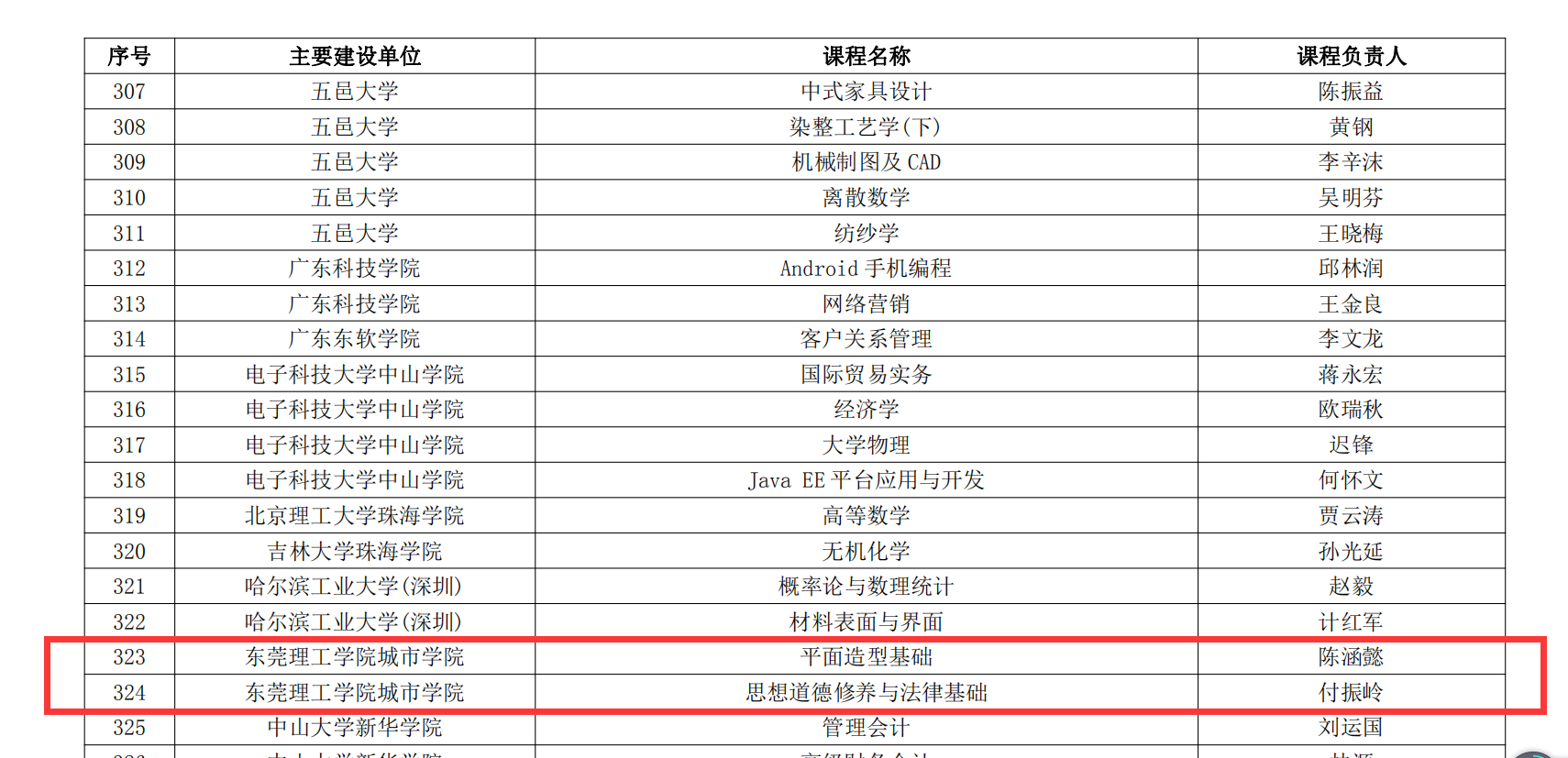 为贯彻落实《教育部关于一流本科课程建设的实施意见》(教高【2019(8)号】精神,广东省教育厅于2020年6月启动了广东省一流本科课程遴选认定工作,beat365官网积极组织教师申报。经学校遴选推荐,省厅组织资格审核、专家评审与公示公告,beat365官网创意设计学院陈涵懿博士主持的《平面造型基础》课程、马克思主义学院付振岭老师主持的《思想道德修养与法律基础》被确定为广东省2020年度省级一流本科课程(线下一流课程)。
