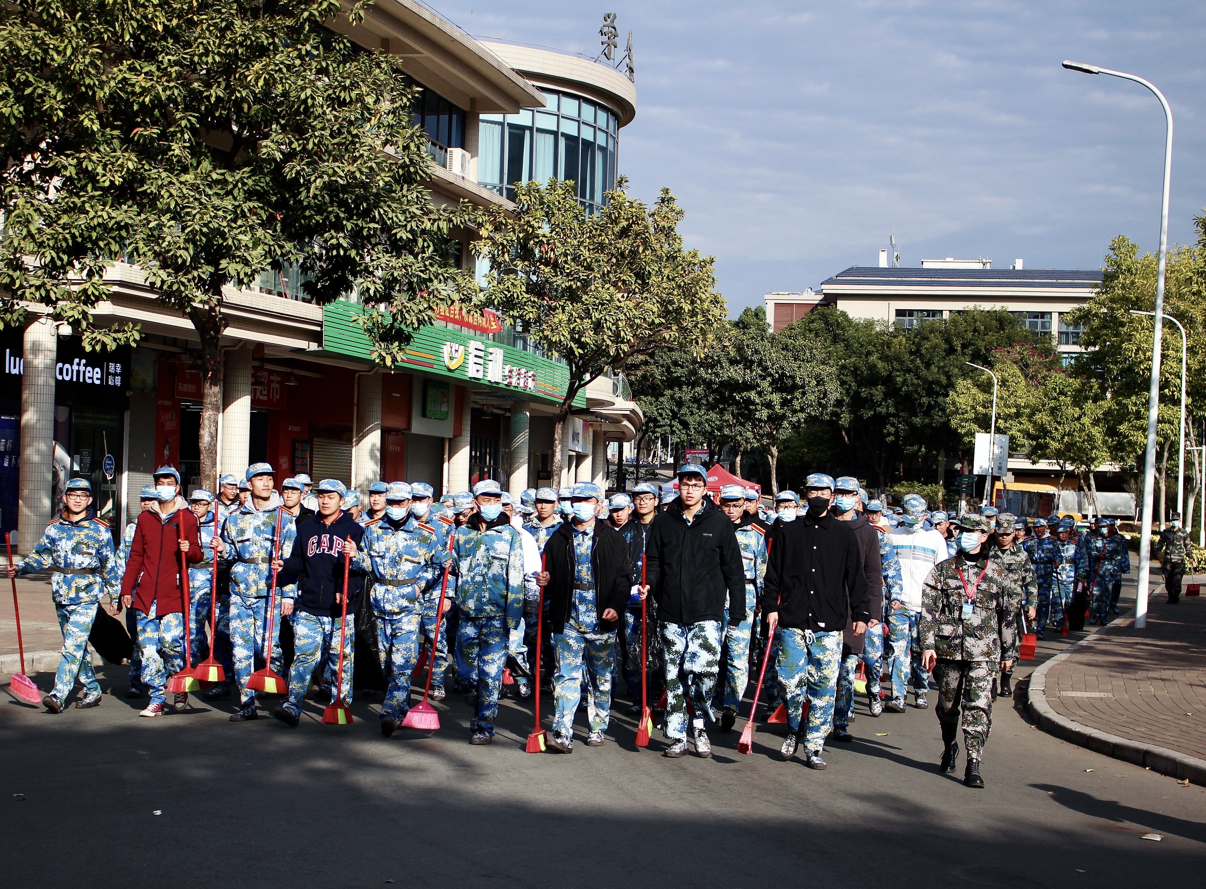 从1月7日开始,军训新生在各指导老师的带领下,对全校进行了卫生大扫除。同学身着军训服,热情高涨,在各连的指导员和相关老师的带领下,对学校行政大楼、图书馆、教学楼、实训室等进行清理打扫。他们分工明确、通力合作,不放过任何卫生死角,发扬着不怕苦、不怕累、不怕脏的军人精神。