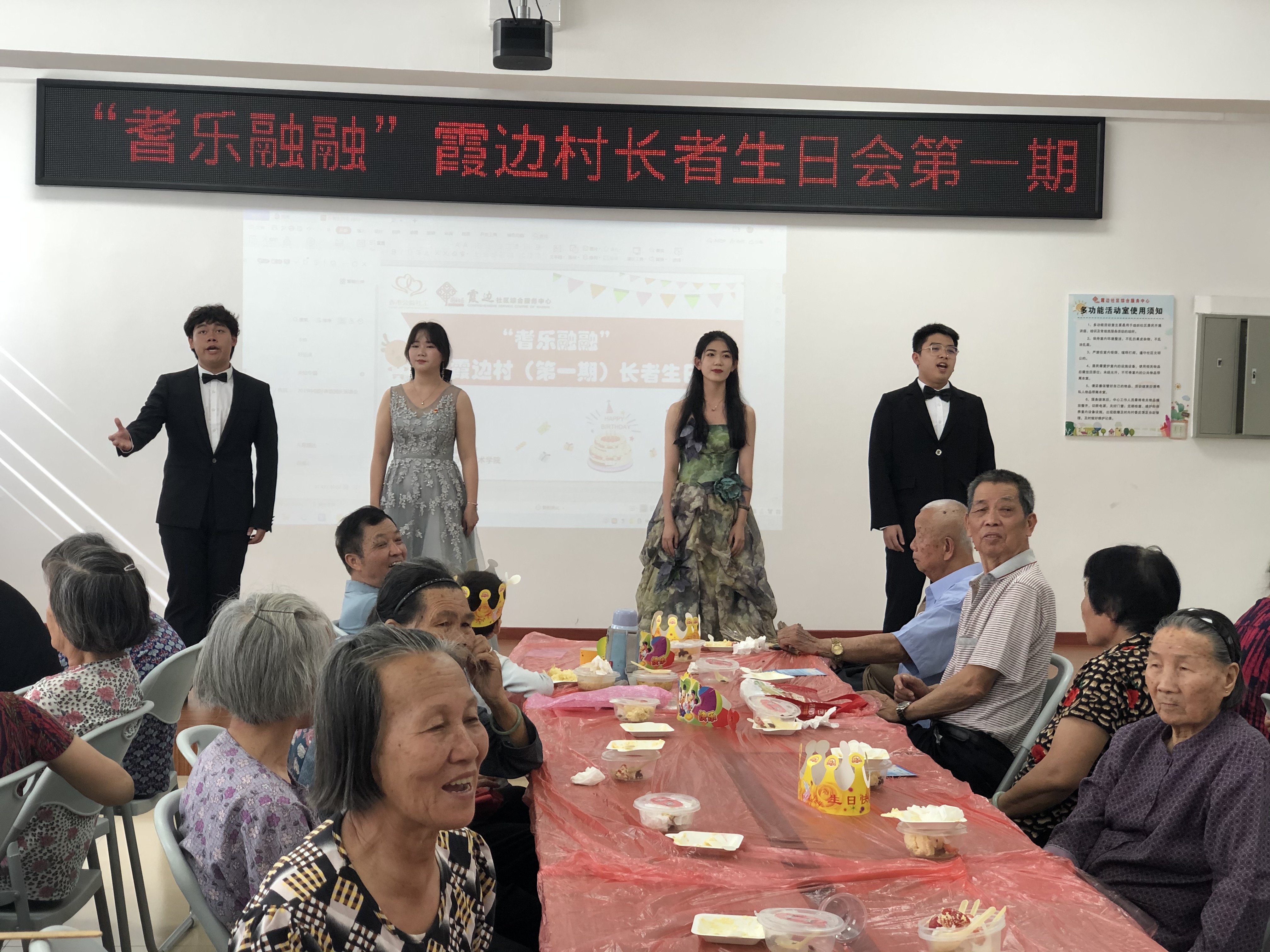 迎接建党一百周年,艺术学院学生党支部把开展党史学习教育、为群众办实事作为一项重大任务。在教育引导党员、积极分子知史爱党、知史爱国,从中汲取奋进力量的同时,将党史学习教育同解决群众实际问题密切结合,2021年4月23日下午,艺术学院学生党支部暨院志愿队走进寮步镇霞边社区,在社区的长者集体生日会上献歌献舞,共庆天伦。