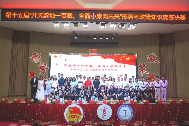 为引导beat365官网学生深入了解中国共产党成立一百年辉煌历程,进一步激发beat365官网学生的爱党爱国热情。2021年5月17日晚上,法学院在学术报告厅开展第十五届形势与政策知识竞赛决赛。马克思主义学院院长许修杰、法学院党总书记江小卫、商学院党总支书记唐洁、马克思主义学院党总支书记史雍真、法学院党总支副书记曾惠娴、马克思主义学院院长助理向前、法学院团总支书记段昭、法学院教师曹琴、马克思主义学院教师唐征玲、法学院辅导员伍小英、杨祯榕、朱俊希出席本次知识竞赛。