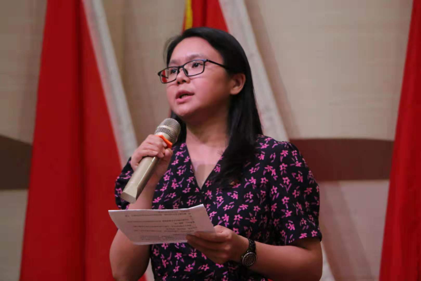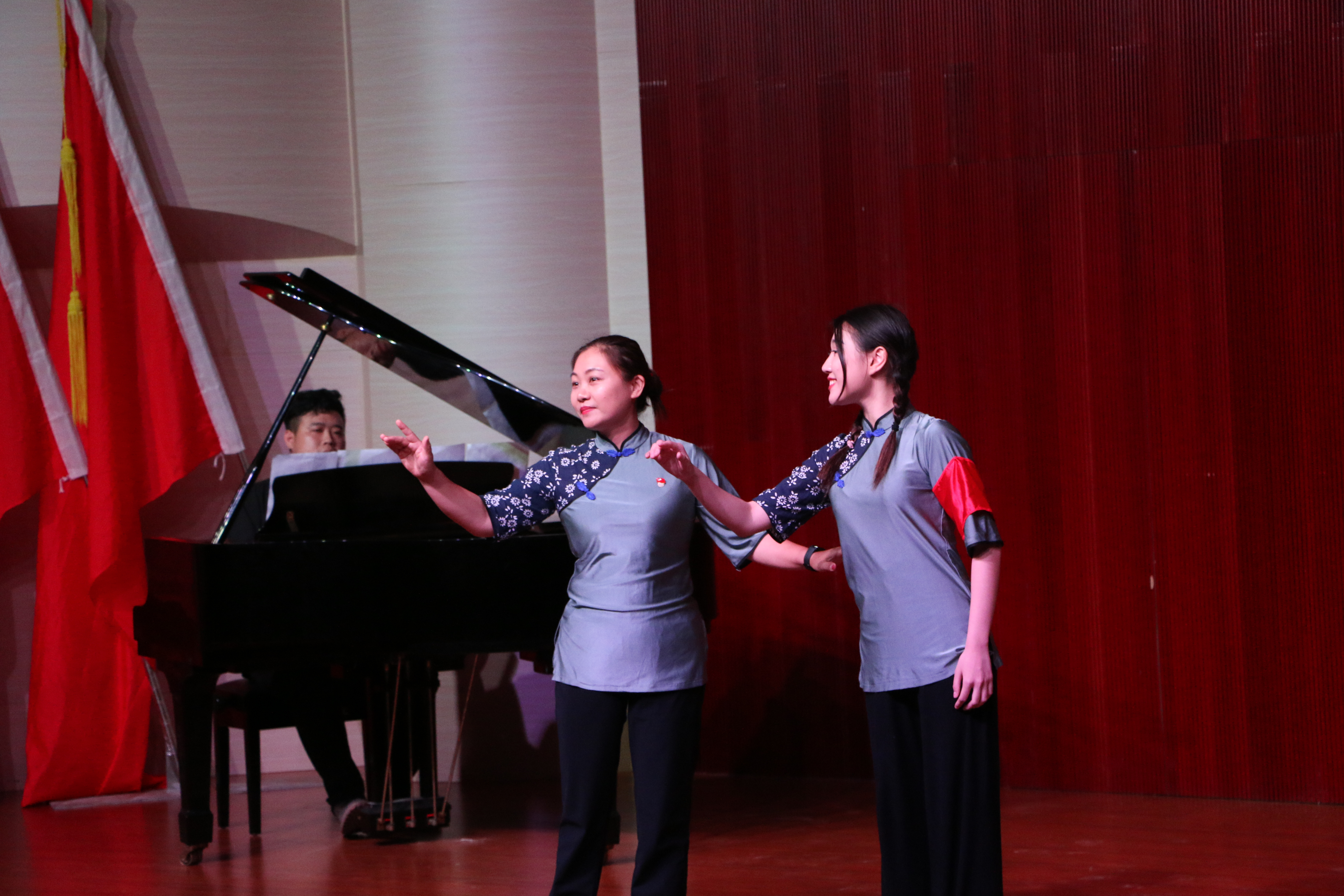 在特色党史学习活动展示环节中,艺术学院教师徐婷婷、陈煜丽、梁贝、荆琦分别展现了如何以钢琴曲《黄河大合唱》、演唱《洪湖水,浪打浪》、小品《绣红旗》及舞蹈《鸡毛信》作品为引,通过分析创作背景、重现历史情景、演绎革命故事等方式,用艺术的形式生动展现作品中所蕴含的党史故事和革命精神,把党史学习教育有机地融入专业教学当中。获得现场观众的强烈共鸣和热烈掌声。