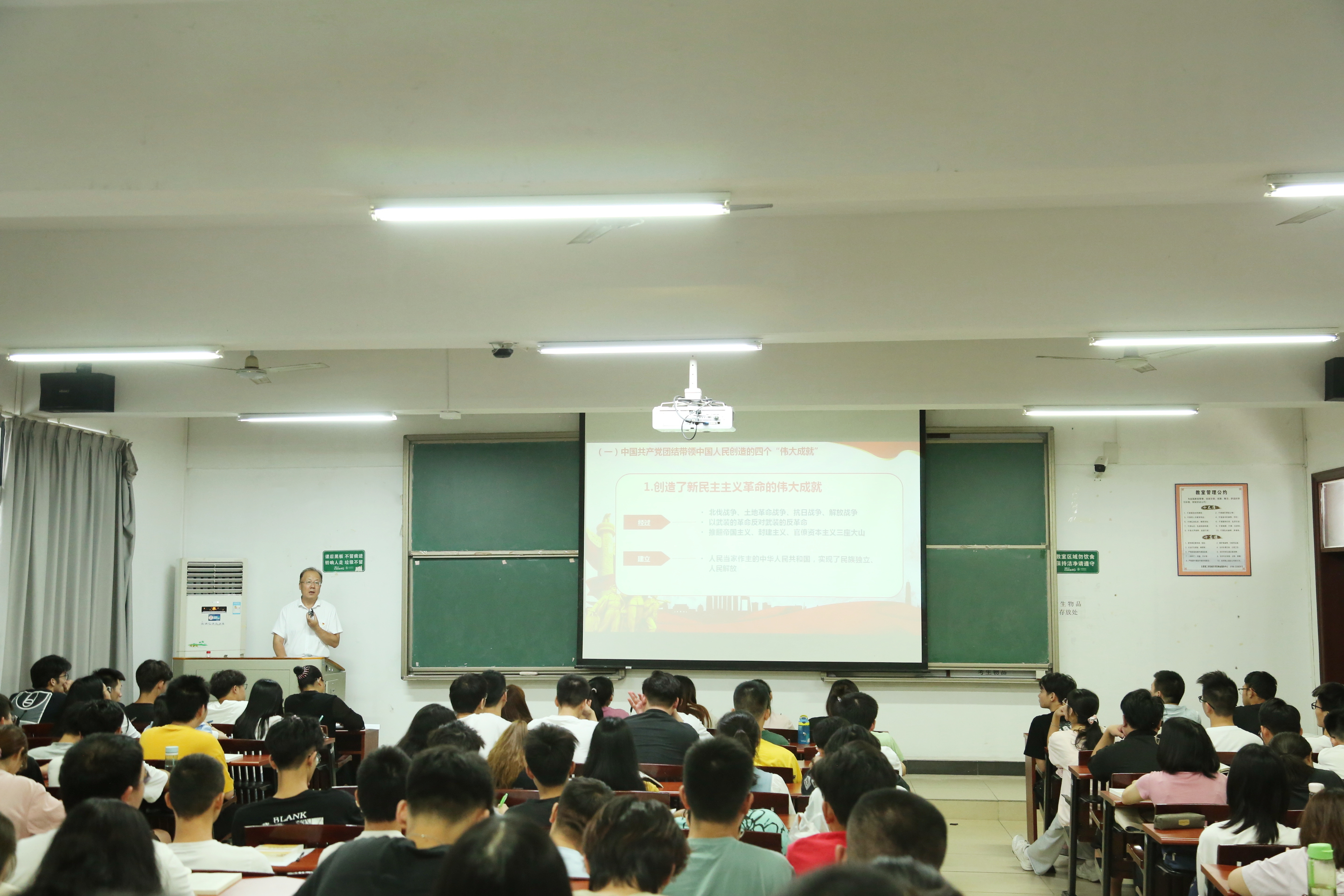“在实现中华民族伟大复兴中国梦的征程中,每个人都是‘梦之队’的一员,青年更是追梦圆梦的排头兵,更应该用奋斗唱响最动人的青春之歌。”10月11日下午,学校党委书记章德胜在教学楼7C308课室,向城建与环境学院近200名同学讲授《认真学习习近平总书记“七一”重要讲话精神 担当民族复兴时代责任》思政第一课,深入讲解习近平总书记“七一”重要讲话精神的重大意义、重要地位和主要内容,并引导同学们以实现中华民族伟大复兴为己任,增强做中国人的志气、骨气、底气,不负时代、不负韶华、不负党和人民的殷切期望。