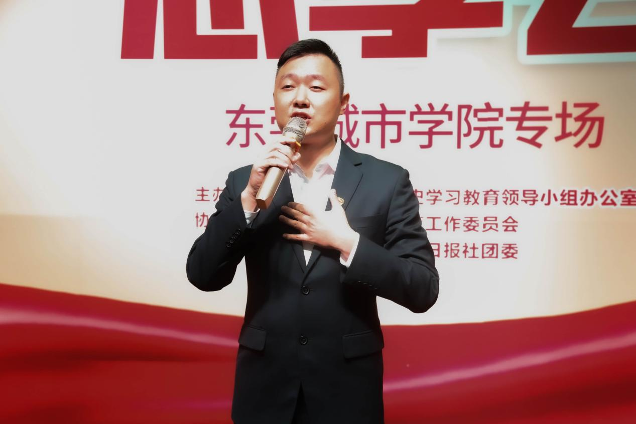 艺术学院党总支副书记张宏渝以此次“文艺党课”参与者的身份,分享他的感受体会:“通过参与此次文艺党课,我深深感受到作为一名党员,作为一名文艺工作者,我们要坚定文化自信和艺术理想,要坚持正确导向,引领新时代社会新风尚,为社会带来更多美的感悟、智慧的启迪、精神的激励,树立风清气正的文艺行业新风,自觉肩负起新时代文艺工作者的使命担当。”