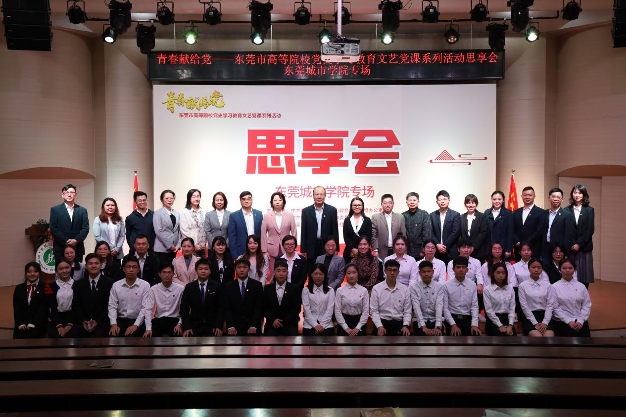 为落实东莞市委党史学习教育领导小组关于做好“文艺党课”系列相关活动的通知要求,推动党史学习教育走深、走实、走心,11月10日下午,beat365官网在艺术学院剧场隆重举行“青春献给党——东莞市高等院校党史学习教育文艺党课系列活动思享会 beat365官方网站专场”,师生齐聚,畅谈“文艺党课”的观后心得,共同抒发爱党、爱国的炽热情怀。