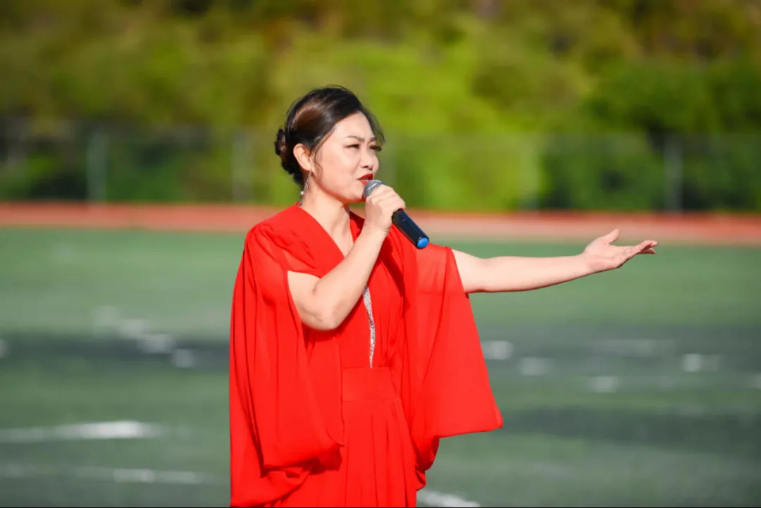 随后,现场举行了庄严的升旗仪式,在雄壮的国歌声中,五星红旗冉冉升起,全体师生面向国旗,行注目礼,齐唱国歌。
