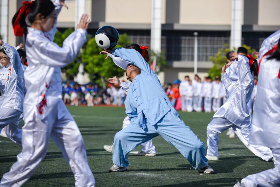 随后,现场进行体育舞蹈恰恰《祖国万岁》,太极拳《禅》、舞韵瑜伽《万疆》和各学院代表队“同跳一支舞”等大型团体表演。热情洋溢的恰恰、行云流水的太极、优美柔和的瑜伽以及活力四射的“同跳一支舞”的表演,为现场观众献上了一场精彩纷呈的视觉盛宴。